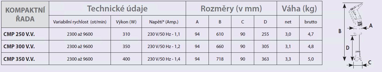 | rychlost | 2300 - 9600 ot./min. |