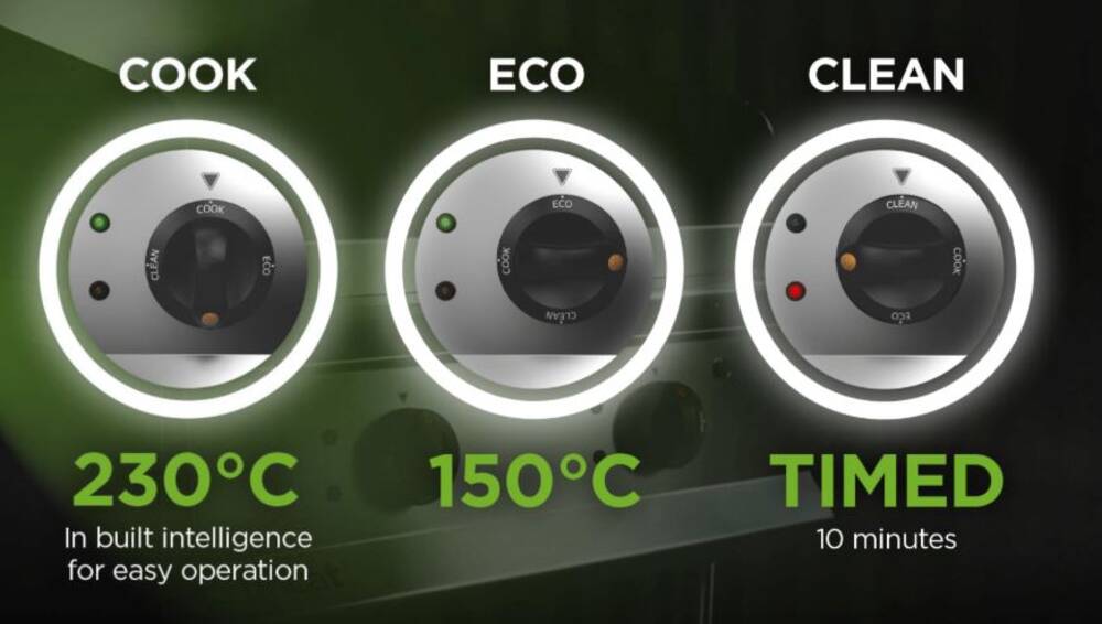 • technologie odpařování přeměňuje tuk a nečistoty na popel pro snadné čištění vymetením
